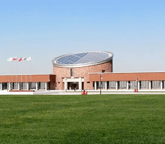 建筑面積1697平米,東西長(zhǎng)100米,南北寬13米,建筑高度14.5米。作為葡萄酒的文化展示區(qū),又位于廣場(chǎng)軸線終端,本身也是一件展示品。
