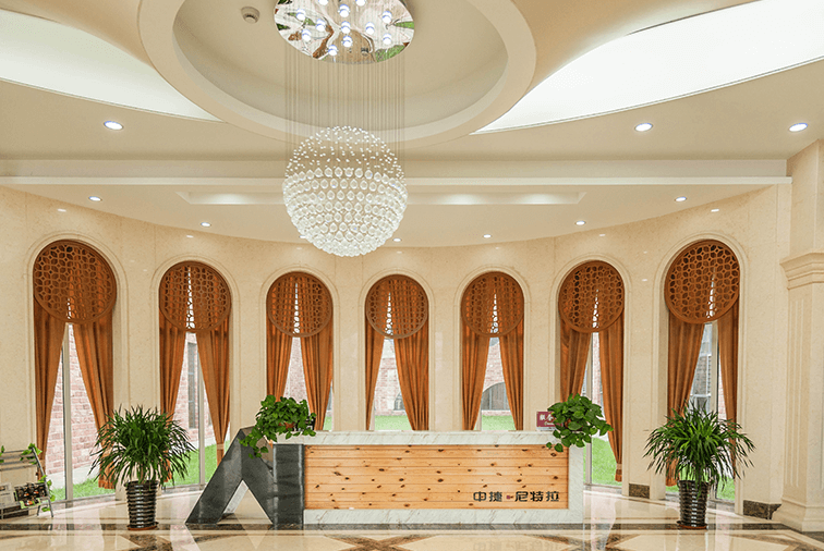 展覽館設(shè)置上人屋面可以布置綠化作為屋頂陽(yáng)臺(tái),俯瞰整個(gè)酒莊盡收眼底。誼盛軒室內(nèi)裝飾設(shè)計(jì)理念為:友誼與輝煌。